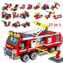 Buy Now 394pcs 27in1 Fire Fighting Truck Building Blocks Compatible legoing City Car Helicopter Educational Brick Toys for Children Gift before expired and You will save 42% today